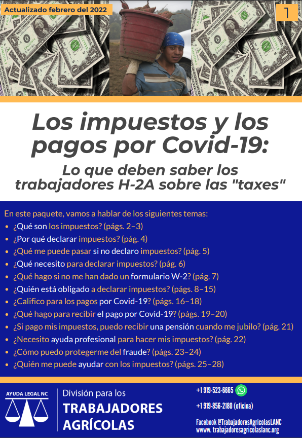 This booklet is a guide for farmworkers to help them understand their rights and obligations related to taxes and Covid-19 stimulus checks.